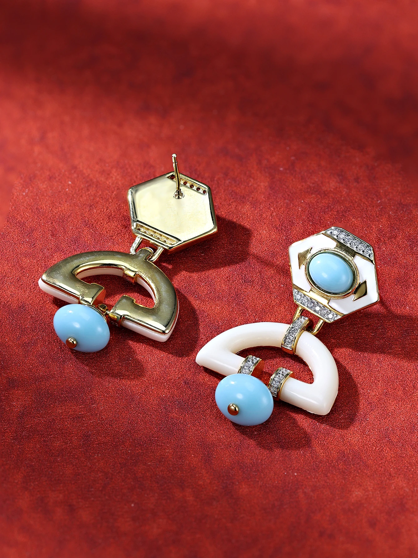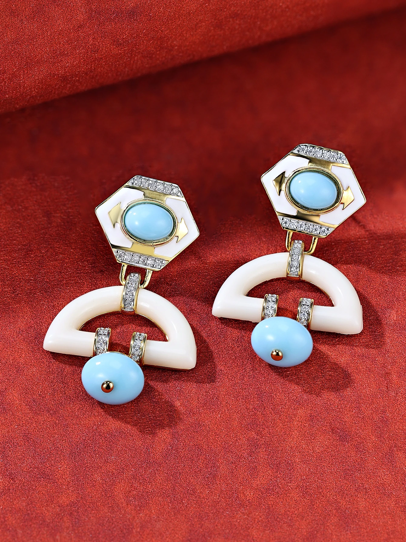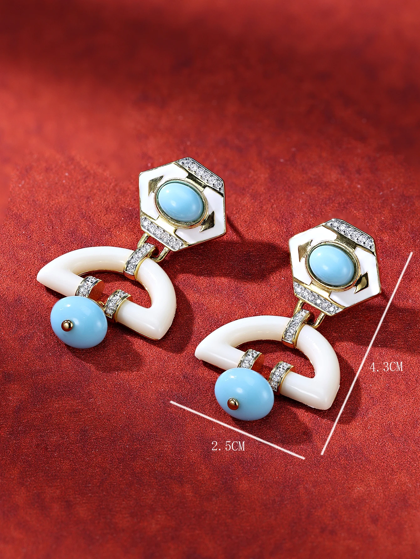 Circular Geometric Zircon Clip-on Earrings Platinum Plated Resin with Bezel Setting Trendy Women's Gift